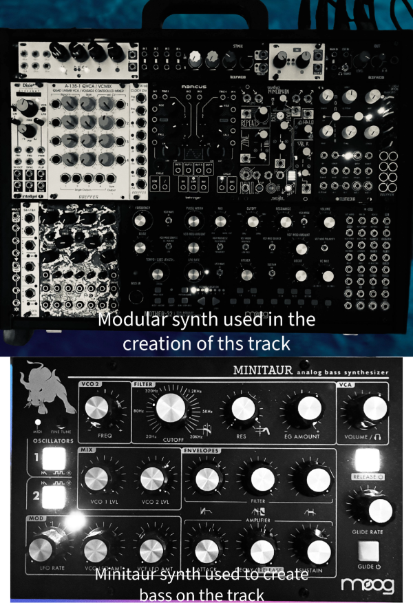 The music is inspired by the phases of the moon and is composed of three distinct sections. The first section is rhythmic and energizing, featuring regal melodies that ascend while a steady bassline enhances bodily awareness. The second section is graceful and ephemeral, weaving together the ascending and descending motifs from the first part into a rich tapestry of enchanting sounds. Finally, the last section showcases the true purpose of my modular synthesizer—a mesmerizing generative sequence where semi-random sounds emerge within a defined structure, grounded by a bassline created with my analog bass synth, the Moog Minitaur.
